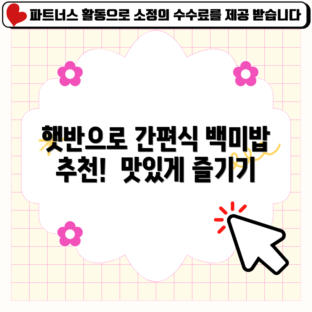 ⚠️ 이 포스팅은 쿠팡 파트너스 활동의 일환으로 수수료를 지급받습니다 어떤 맛이 가장 좋을까? ✅ 최저가 확인하기 햇반 백미밥의 주요 특징과 상세 스펙을 확인하세요.햇반 백미밥은 준비가 간편해 누구나 쉽게 즐길 수 있는 제품입니다. 210g의 용량으로 한 끼 식사로 안성맞춤이며, 따뜻한 밥을 언제 어디서든 간편하게 즐길 수 있는 장점이 있습니다. 이제 바쁜 일상 속에서도 맛있는 백미밥을 간단히 해결할 수 있습니다!주요 특징햇반 백미밥은 국내산 쌀로 만들어져 신선하고 맛이 좋습니다. 한 번에 24개가 들어 있어 가족 단위 소비자에게도 적합합니다. 특히, 전자레인지에 2분만 데우면 완성되는 간편함 덕분에 자취생, 직장인들 사이에서 큰 인기를 끌고 있습니다. 상품 상세 정보 보러 가기 상품 스펙항목세부 스펙..